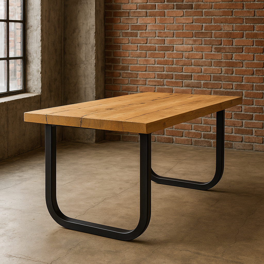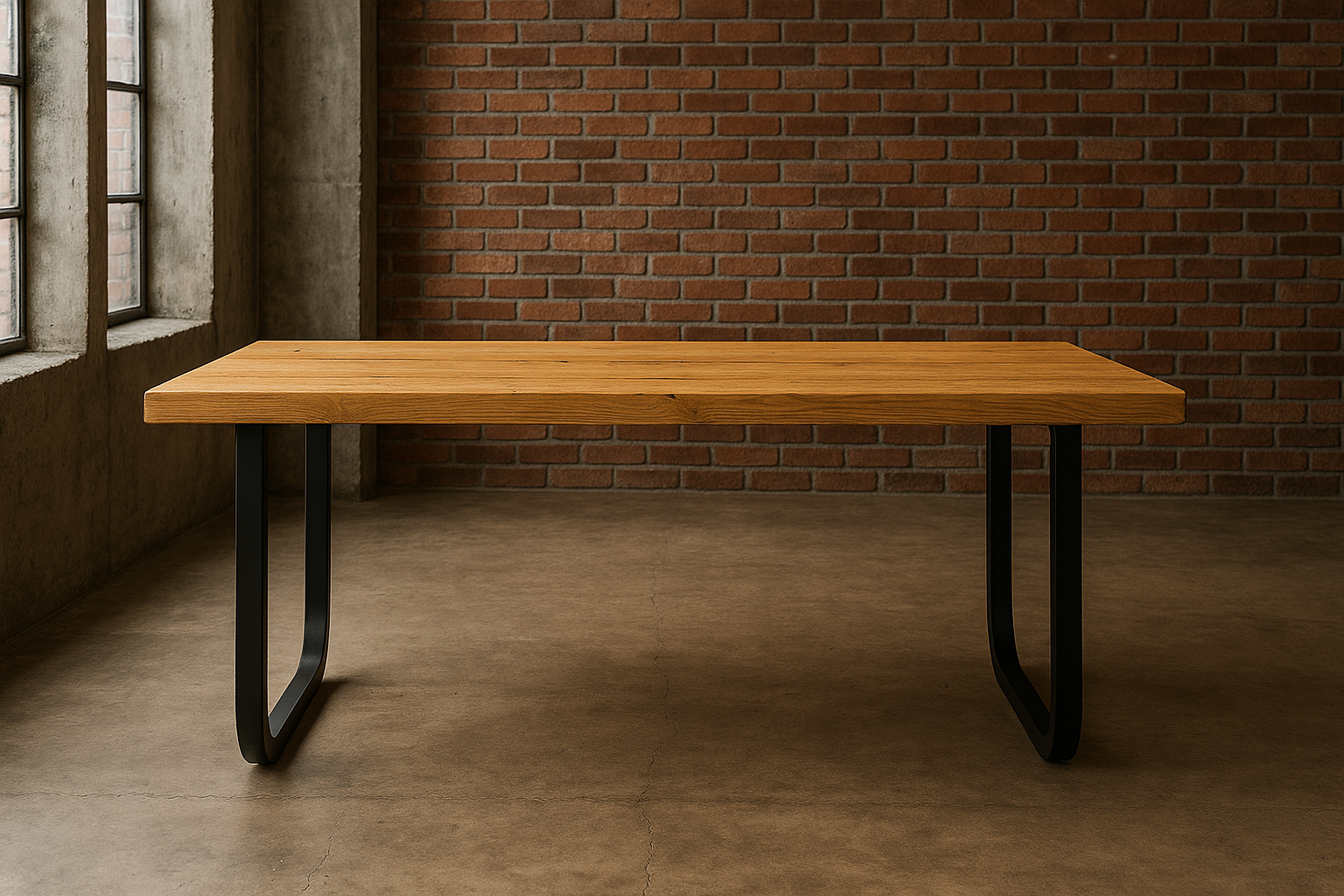 Entdecken Sie unseren exklusiven Esstisch aus charaktervoller Asteiche, handgefertigt in einer Tischlerei und mit hochwertig verarbeiteten Metallbeinen im modernen Industriedesign. Jeder Tisch ist ein echtes Unikat – mit natürlichen Rissen, Astlöchern und einer einzigartigen Maserung, die Ihrem Zuhause einen warmen und authentischen Look verleiht.