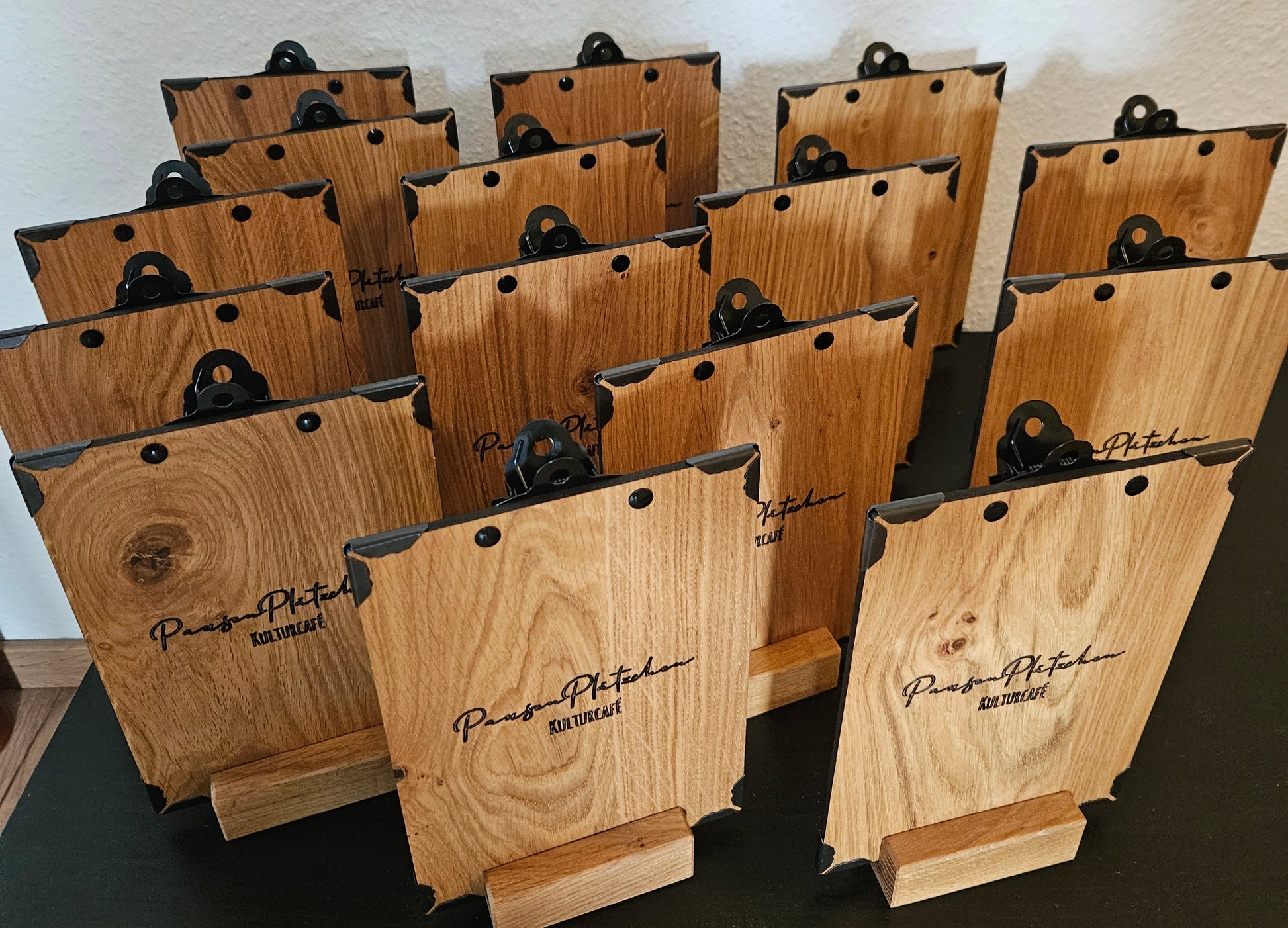 Eiche FSC Klemmbrett, beidseitig gebürstet und geölt. DIN A3, A4& A5