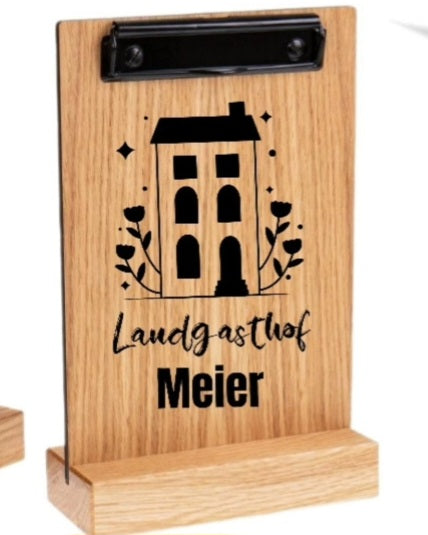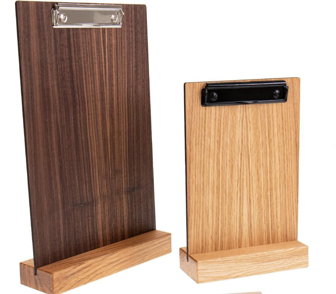 Verleihen Sie Ihren Unterlagen Stil und Robustheit mit unserem Holz Klemmbrett aus zertifizierter Eiche FSC®. Dieses Klemmbrett bietet eine vielseitige Lösung für die Präsentation Ihrer Dokumente, egal ob es sich um wichtige Geschäftspapiere, Pläne oder einfach um eine Speisekarte in Ihrem Restaurant handelt.