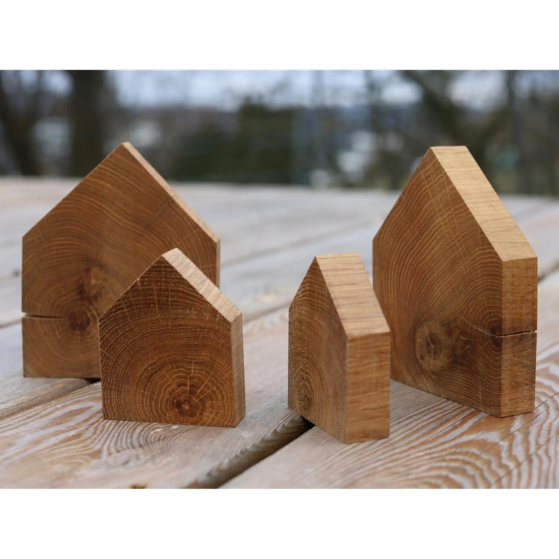 Bringen Sie natürliche Wärme und zeitlose Eleganz in Ihe Zuhause mit unseren Dekohäuschen aus geölter Eiche. Das Set besteht aus zwei Größen (10 cm & 15 cm) und ist handgefertigt aus massivem Eichenholz – jedes Stück ist ein Unikat mit unverwechselbarer Maserung.