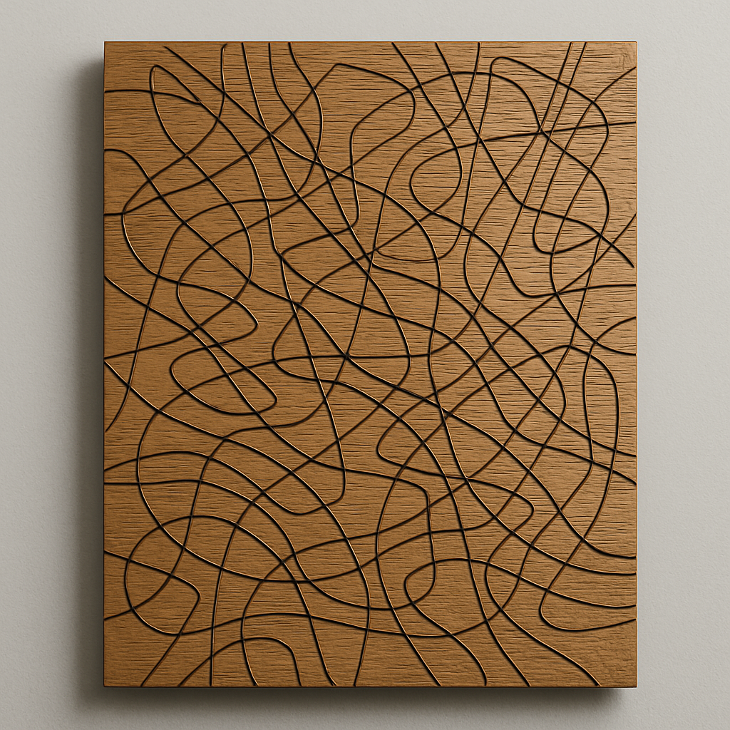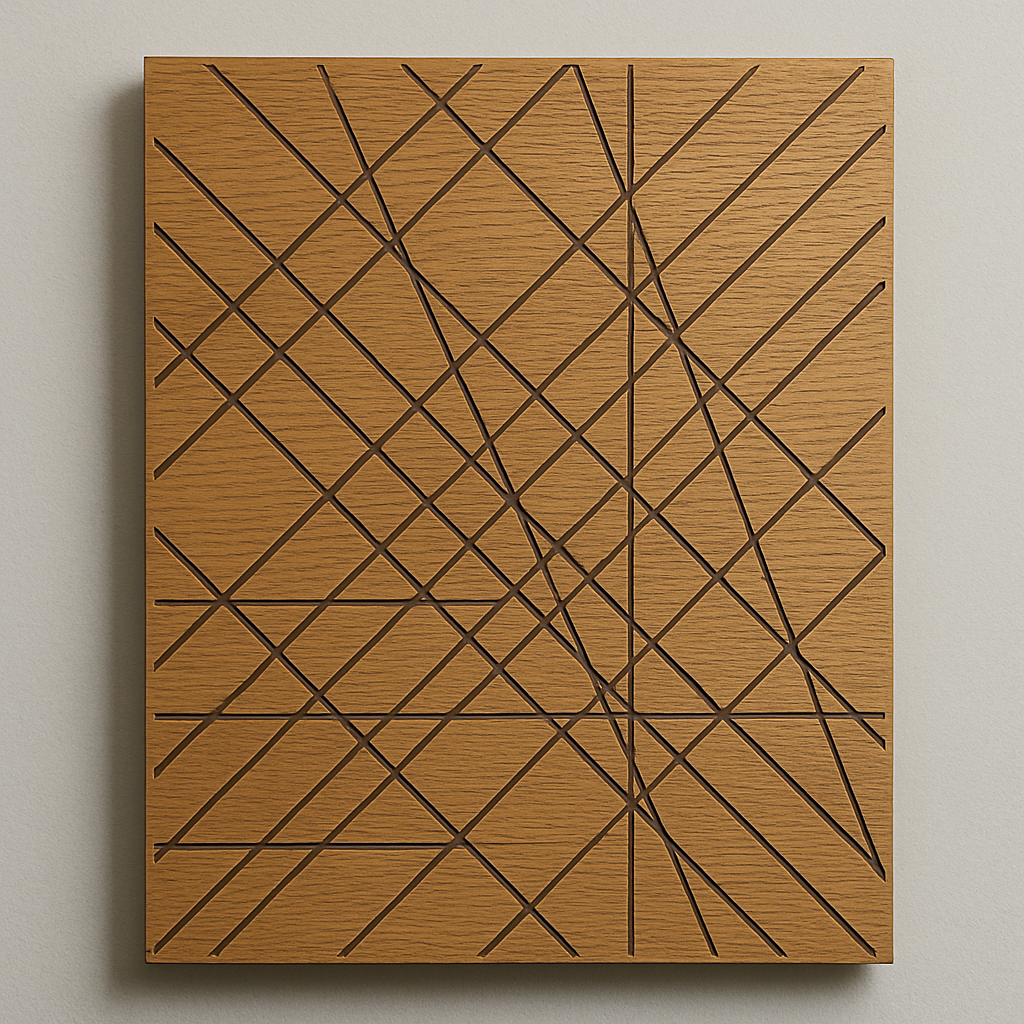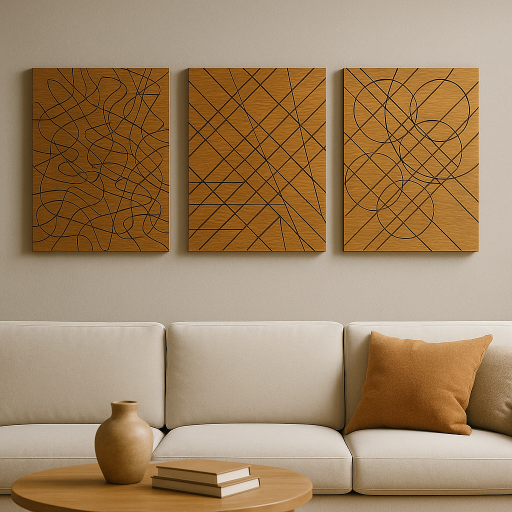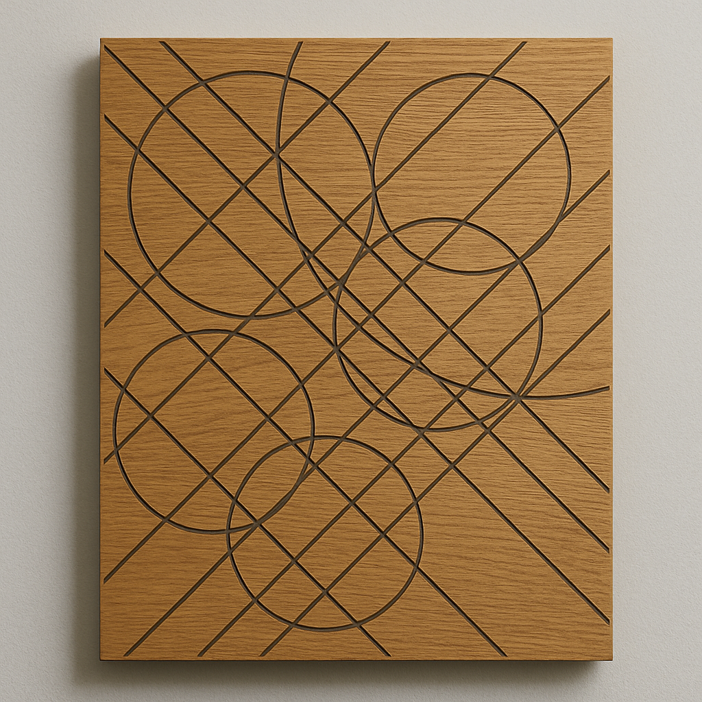 Modernes Wandbild Set aus Eiche – Lasergravierte Geometrische Holzkunst