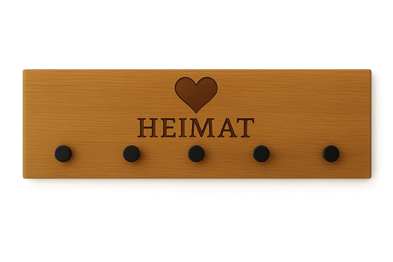 Holz-Garderobe mit Gravur – Wandgarderobe & Schlüsselbrett für mehr Ordnung "Heimat"