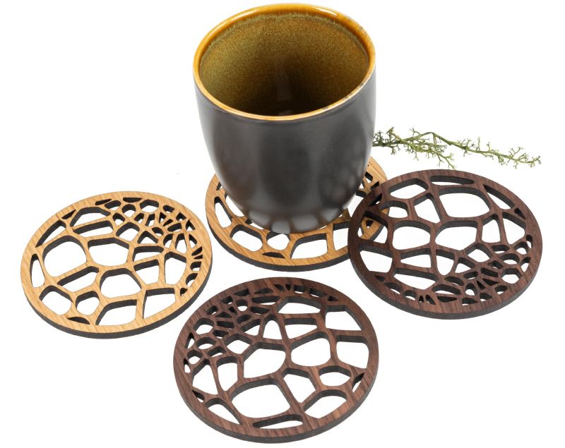 Bestellen Sie jetzt den Holz Untersetzer in organischer Wabenform und bringen Sie Stil und Nachhaltigkeit in Ihre Tischdekoration.
