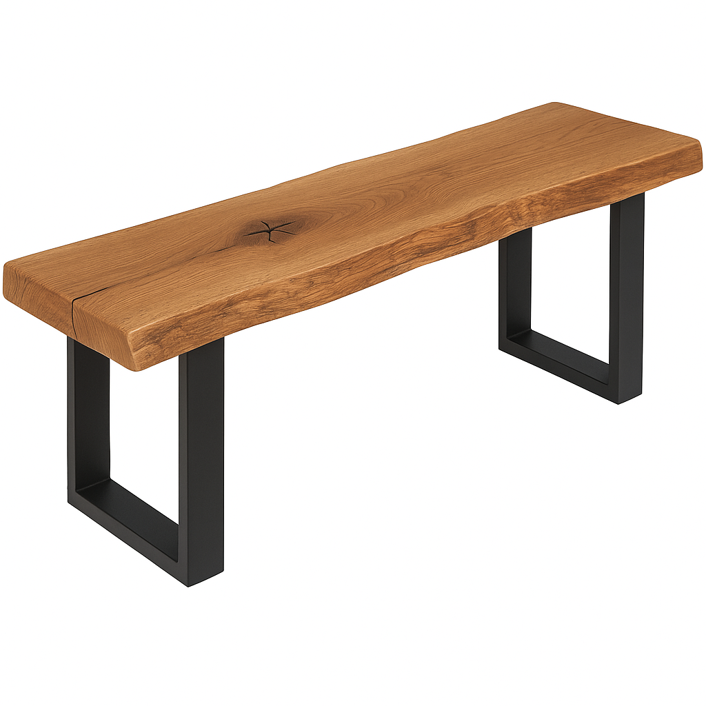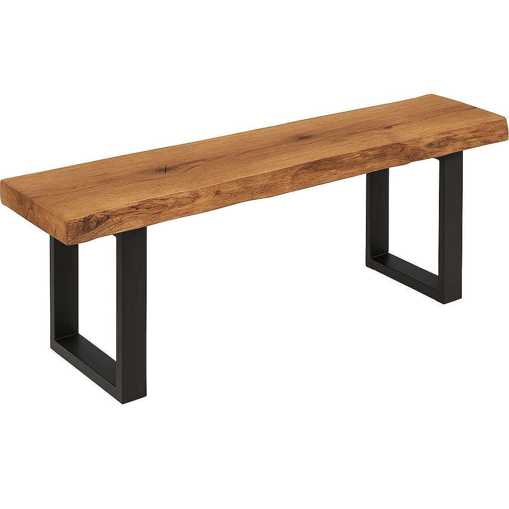 Rustikale Sitzbank aus massiver Eiche mit Baumkante & Metallgestell – Esszimmerbank / Flurbank / Küchenbank handgefertigt