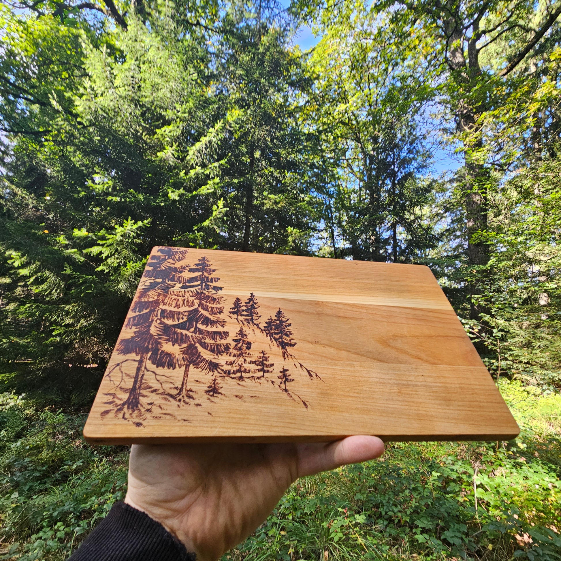 Unser Schneidebrett aus Kirschholz ist ein wunderschönes und praktisches Utensil für Ihre Küche. Jedes Brett wird aus FSC zertifiziertem Holz aus der EU hergestellt und verfügt über eine einzigartige Maserung und Farbe, die Ihrem Zuhause eine natürliche Wärme verleiht. Das Brett ist 30 x 18 x 1,5 cm groß und wird mit einem Motiv als Branding geliefert.