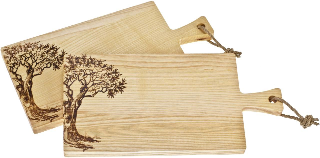 "Griffbrett aus FSC® Esche 40 x 20 x 2 cm - Lebensbaum Branddruck geölt mit Kordel"