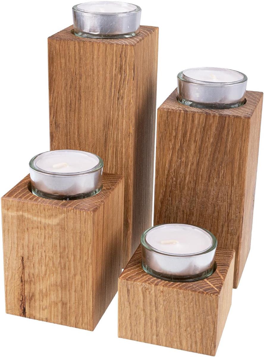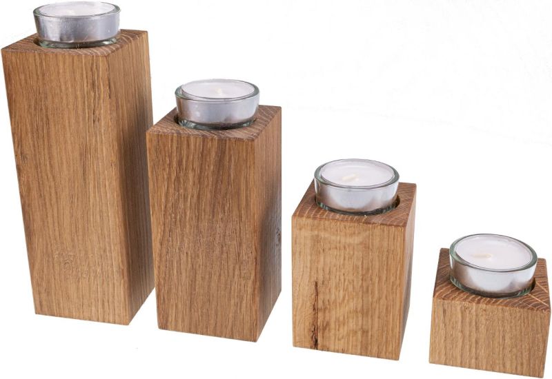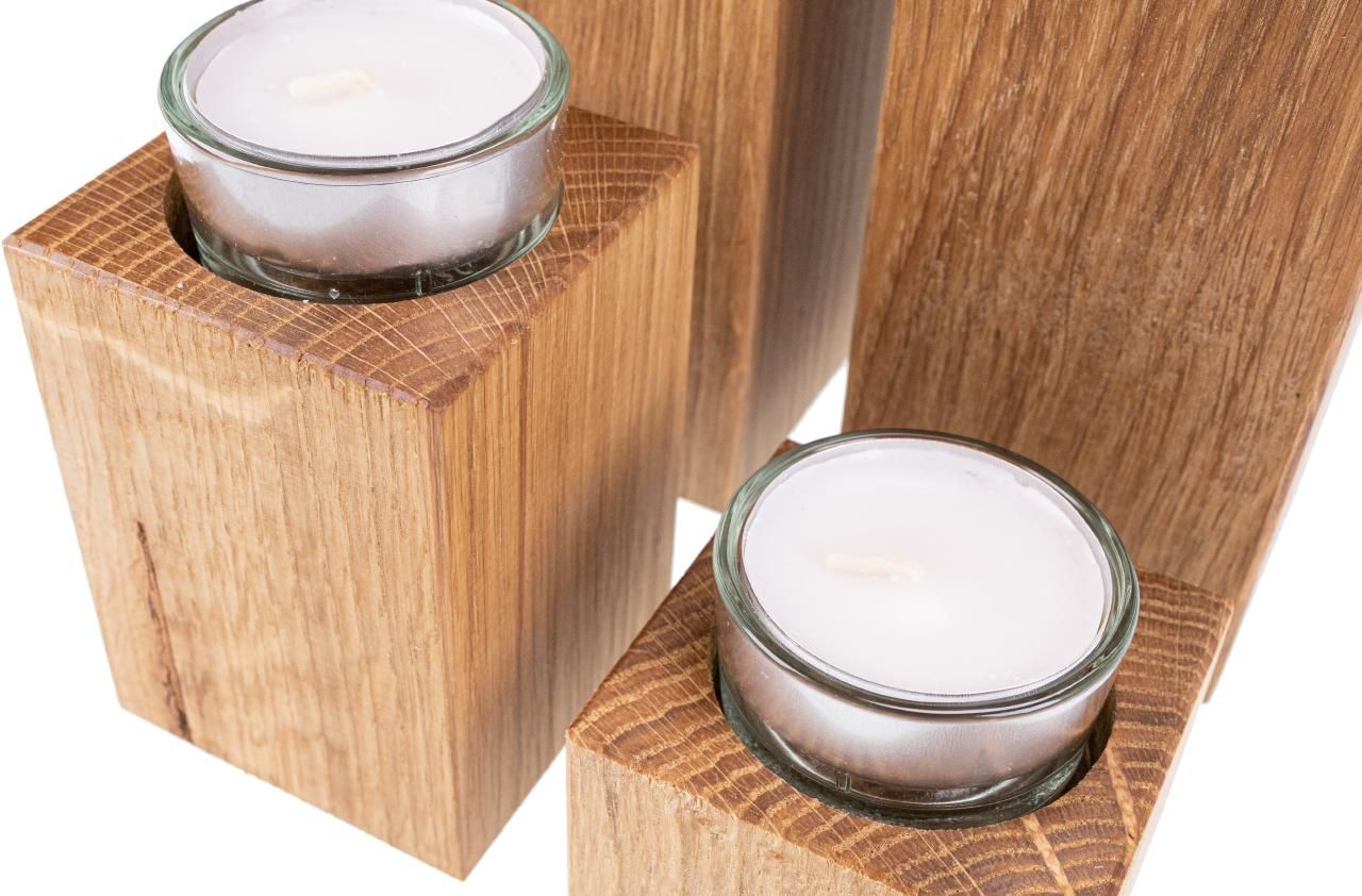 Bestellen Sie jetzt das schlichte Teelichthalter-Set aus geölter Eiche und genießen Sie die warme und gemütliche Atmosphäre, die es in Ihr Zuhause bringt.