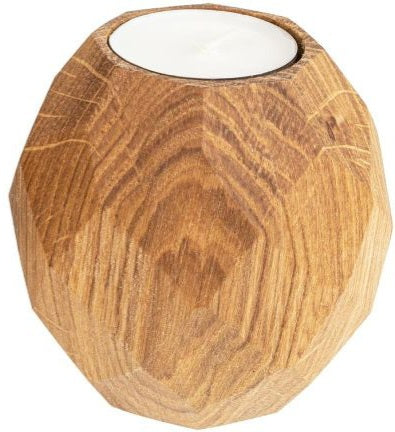 Das geölte Eichenholz verleiht den Teelichthaltern eine natürliche Schönheit und betont die einzigartigen Muster des Holzes. Die Kugeln im Diamantschliff verleihen den Teelichthaltern eine zusätzliche optische Raffinesse und machen sie zu einem echten Hingucker.