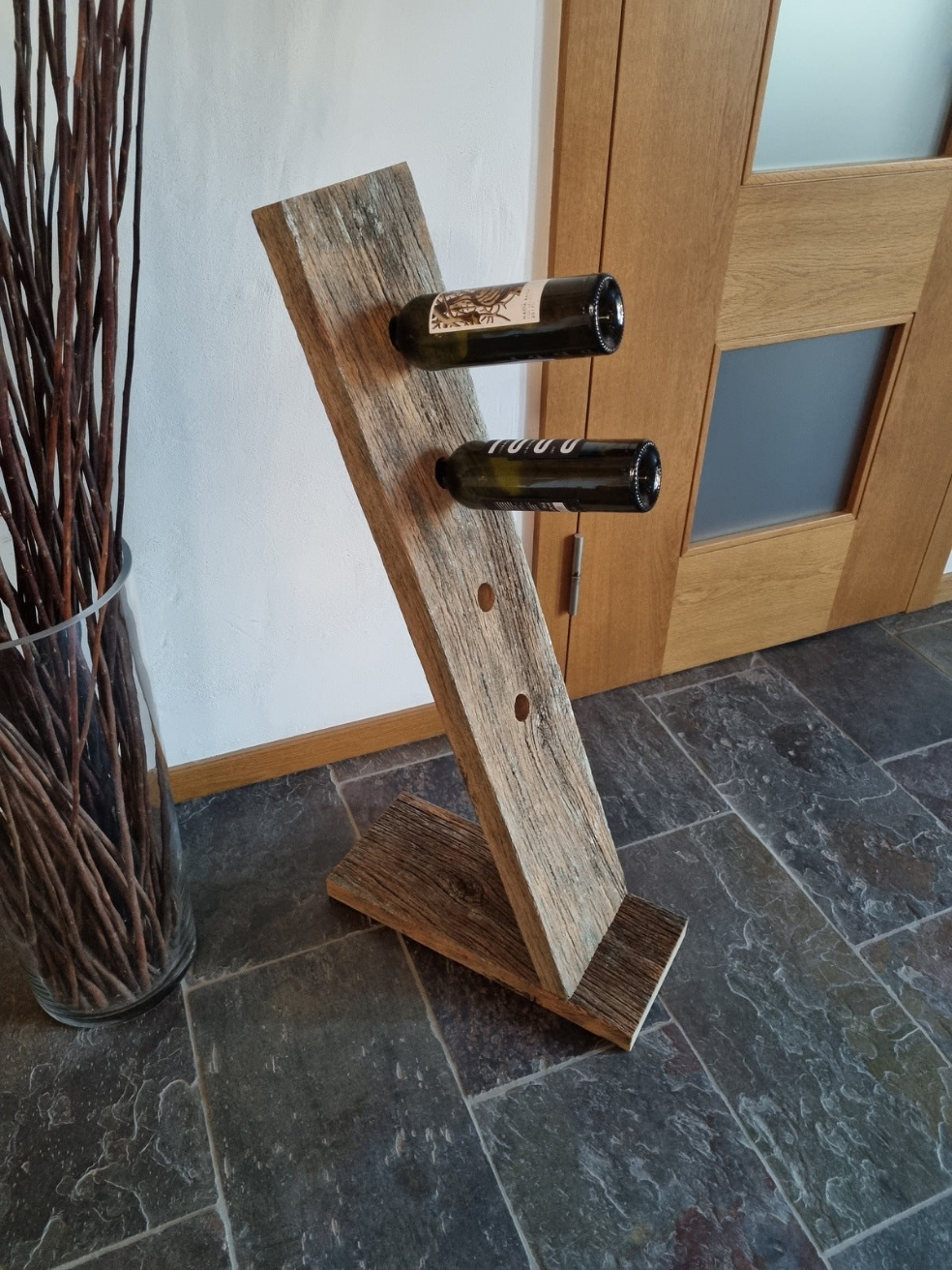 Weinständer "Viwo" aus Eichen-Altholzbalken